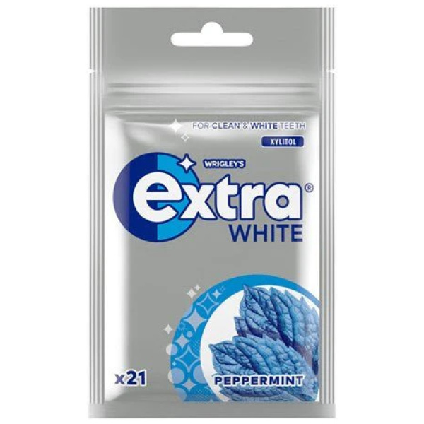 Extra White Sweetmint tyggjó: hressandi, sykurlaust, með sætum mintukeim. Frískar andardráttinn og heldur tönnum hreinum.