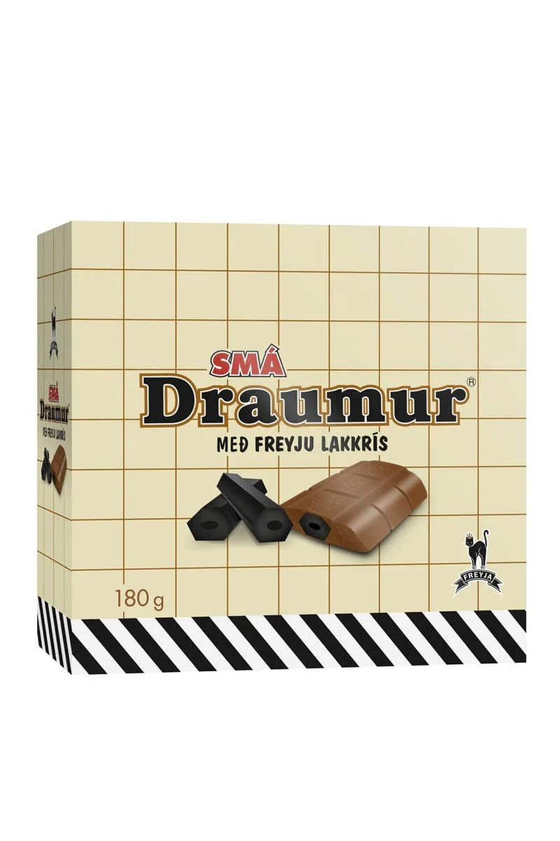 Freyja Draumur er mjúkt súkkulaði með rjómafyllingu sem sameinar silkimjúkt bragð og dásamlega sætu — klassískt íslenskt nammi frá Freyju.