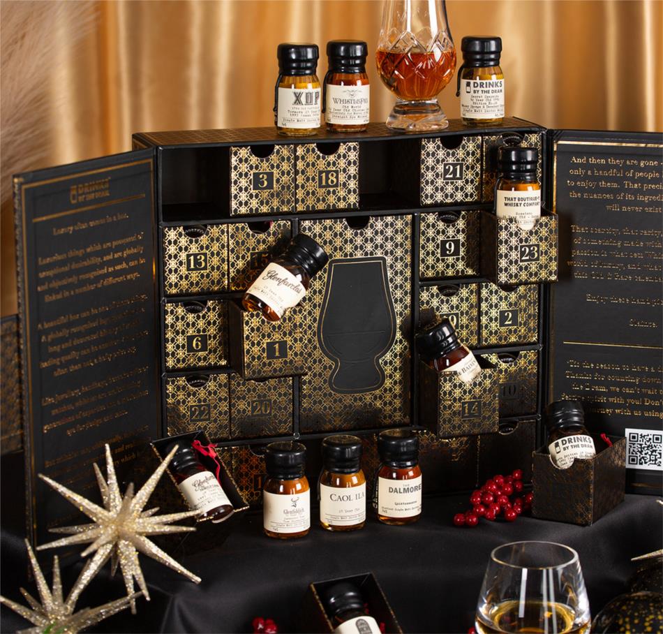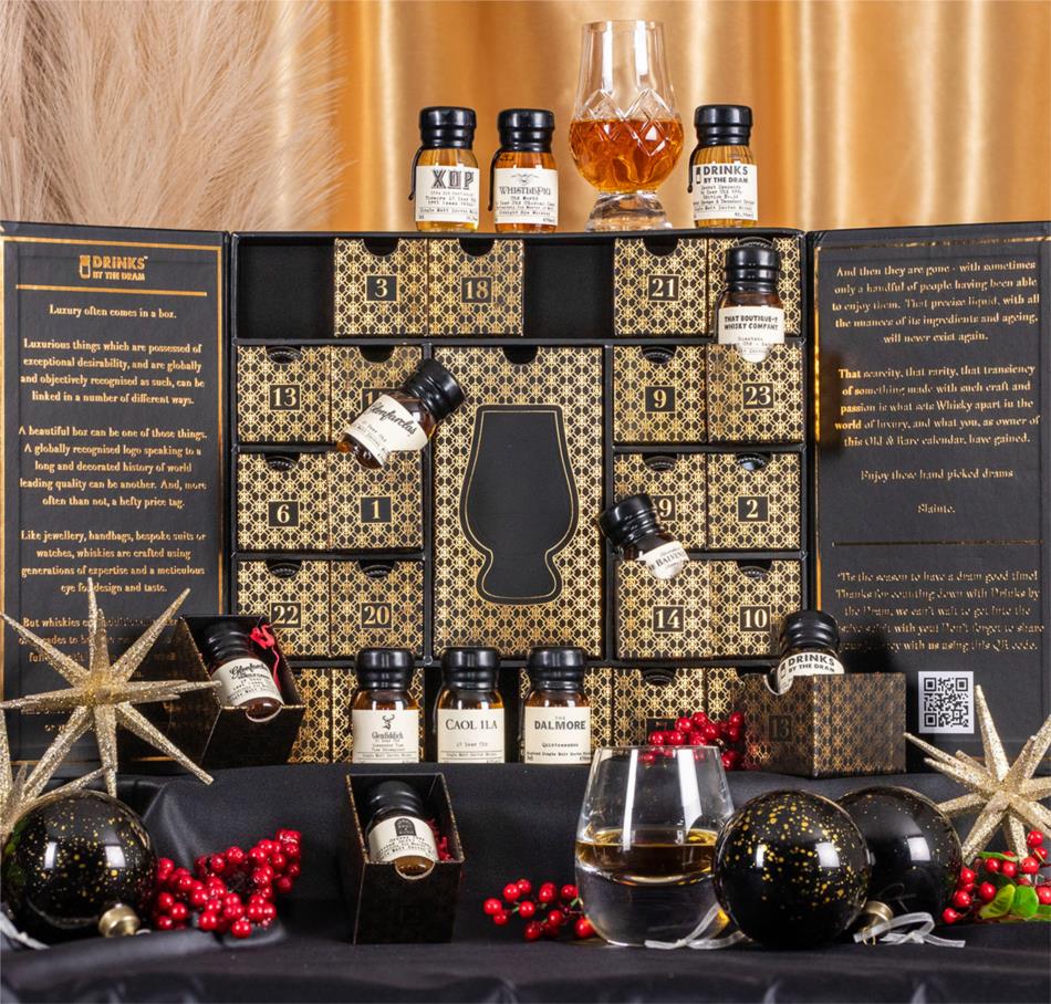Farðu í einstakt bragðævintýri: á bak við hverja hurð er glæsileg lítil skúffa og í henni vaxinnsiglað 30 ml sýnishorn af sjaldgæfu og vel öldruðu viskíi. Það eru 23 mismunandi sýnishorn í heildina, auk Glencairn glers – fullkomið sett til að njóta dásamlegs úrvals eftirminnilegra viskía í desember.