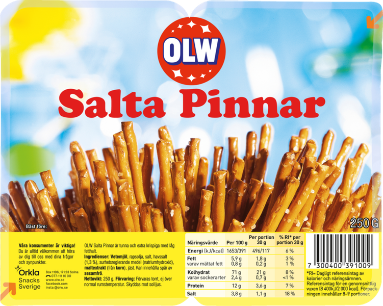 OLW Saltstangir eru stökkar og léttar stangir með réttu magni af salti – klassískt snakk sem hentar við hvaða tilefni sem er.